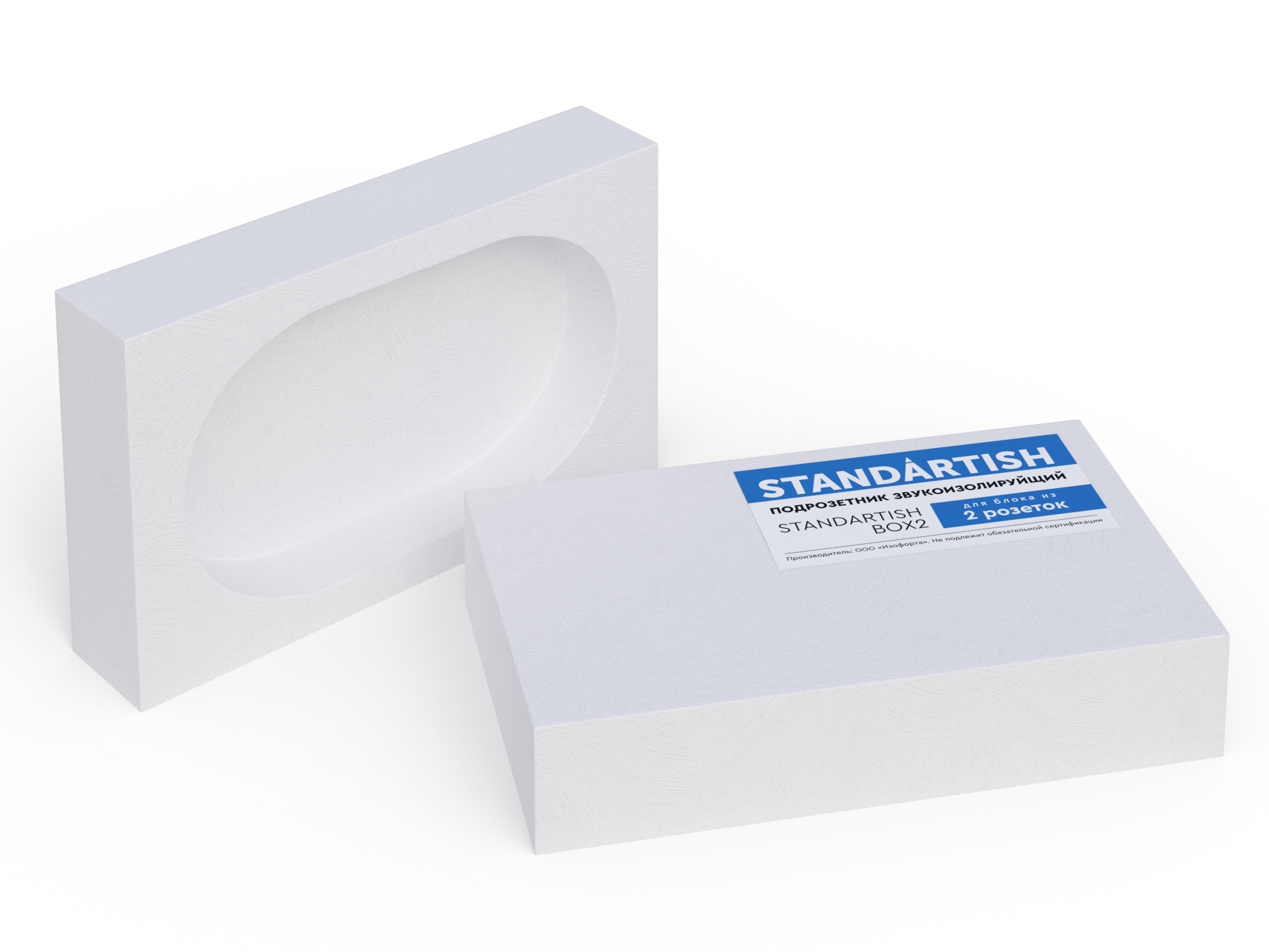 Подрозетник Standartish BOX2 представляет из себя короб, который минимизирует проникновение шума через отверстия электророзеток и выключателей. Его устанавливают как в каркасные, так и в бескаркасные системы шумоизоляции.