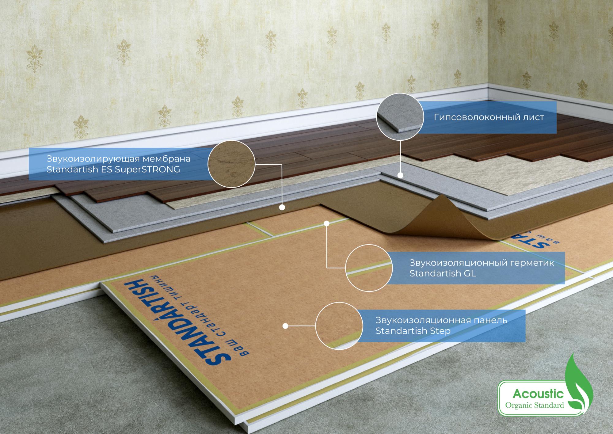 Состав: 4-х камерная комбинированная звукоизоляционная панель Standartish Step, тяжелая мембрана Standartish ES2/ES4