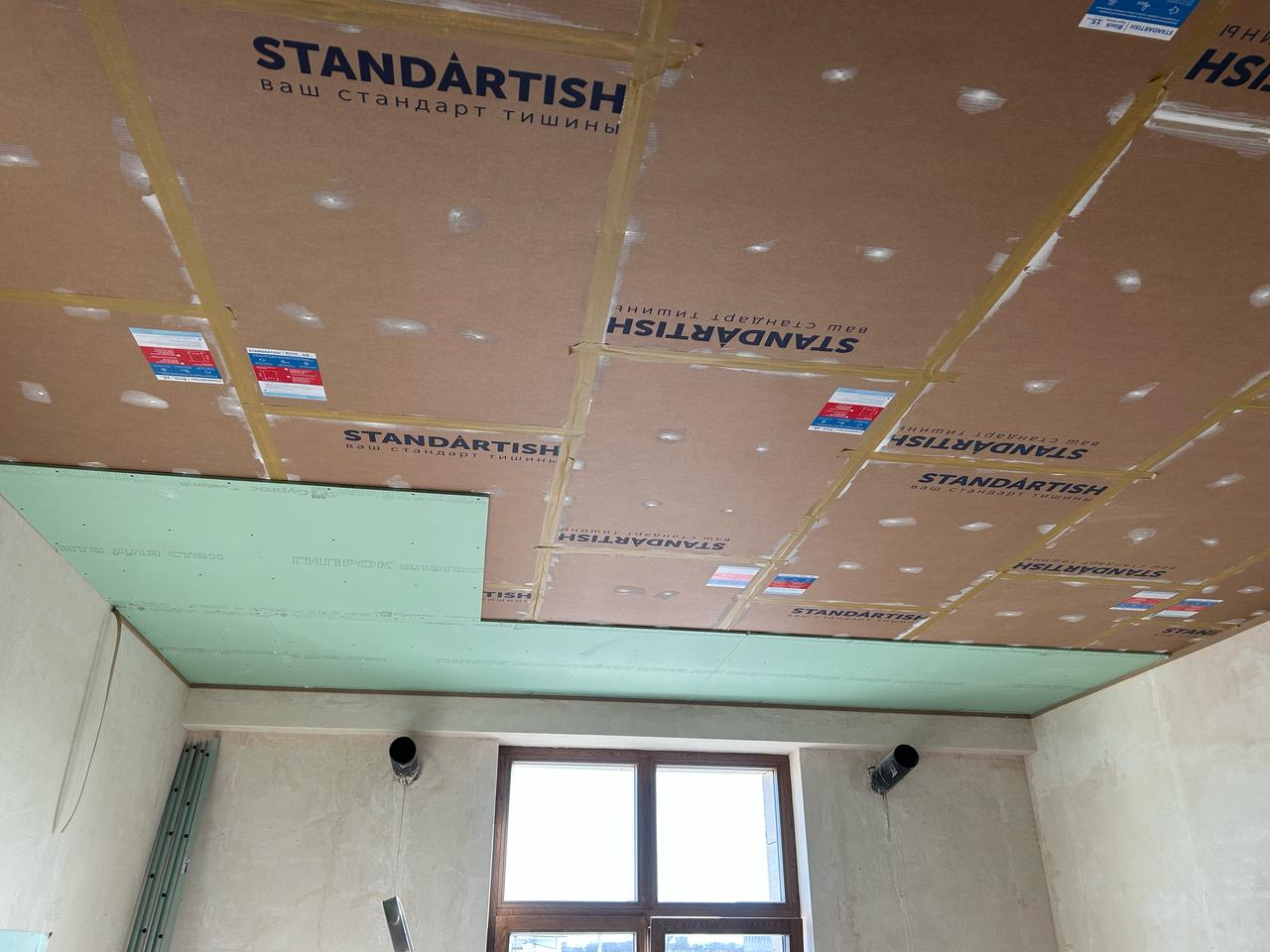 Состав: 3-х камерная звукоизоляционная панель Standartish Block V, виброподвесы Standartish SP и др.материалы.